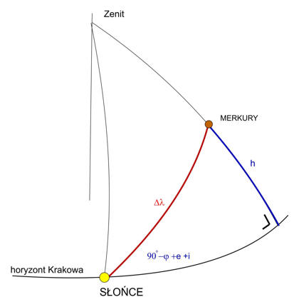 ODP.Wysokość Merkurego nad horyzontem Krakowa podczas zachodu Słońca: