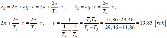 W momencie koniunkcji aJ = aS. Wyznaczamy t:
