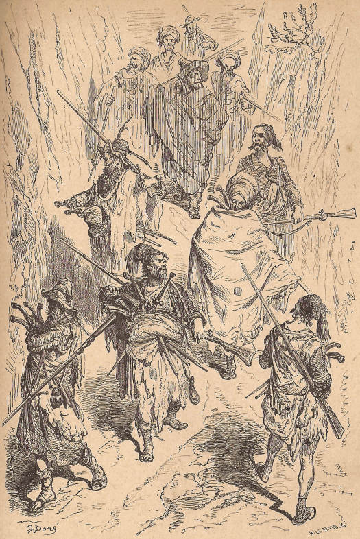 Tiel parolinte, li leviĝis vigle, kaj kuris doni kelkajn ordonojn pri la foriro. Ĉu pro plezuro ekmilitiri, aŭ pro ĝojo kaŭzita de la vizito de lia baptofilo, li ŝajnis tute rejuniĝinta; li havis dudek jarojn malplie, li ridis, li ŝercis, li skuis sian reĝan majestecon. Mi estus neniam kredinta, ke la sola okazaĵo kapabla gajigi rabiston, estas la alveno de la ĝendarmaro. Sofoklis, Vasili, la Korfuano kaj la ceteraj estroj diskonigis en la tendaron la volojn de la Reĝo. Ĉiu estis baldaŭ preta por foriri, dank’ al la tiumatena alerto. La juna adjutant-serĝento Spiro kaj la naŭ viroj elektitaj inter la ĝendarmoj interŝanĝis siajn uniformojn kontraŭ la pentrinda rabista vestaro. Ĝi estis vera ĵonglo: la militministro, se li estus ĉeestinta, sentus de l’ aliformiĝo nur aerpuŝon. La novaj rabistoj montris nenian bedaŭron al sia antaŭa metio. Nur tiuj murmuris, kiuj restis sub la standardo. Du aŭ tri veteranoj diris laŭte, ke oni favoras tro per «elekto», ne enkalkulante sufiĉe la «seniorecon». Kelkaj grumbluloj[6] fanfaronis pri siaj heroaĵoj kaj pretendis, ke ili pasigis jam unu servotempon en la rabistaro. La kapitano trankviligis ilin kiel eble plej bone, promesante, ke ilia vico venos.
