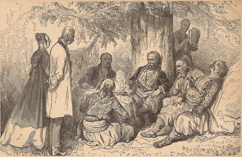 La Reĝo matenmanĝis rostitajn turtojn, sub sia tribunala arbo, kun la nevunditaj oficiroj, kiuj restis al li. Li estis tualetinta, nome forlavinta la sangon de siaj manoj kaj surmetinta alian veston. Li serĉis kun siaj kunmanĝantoj la plej rapidan rimedon por plenigi la mankojn, kiujn la morto faris en liaj vicoj. Vasili, kiu estis el Janina, proponis sin por iri dungi tridek virojn en Epiro, kie la observado de la Turkaj aŭtoritatoj senokupigis pli ol mil rabistojn. Alia, el Lakonio, volis, ke oni aĉetu per sufiĉa pago la malgrandan bandon de la Spartano Pavlos, kiu ekspluatas la regionon Mani, apud Kalamata. La Reĝo, ĉiam penetrita de la Anglaj ideoj, pensis organizi la rekrutigon per la forto, kaj kapti ĉiujn paŝtistojn de Atenlando. Tiu sistemo ŝajnis des pli bona, ke ĝi okazigus neniun elspezon, kaj ke oni ricevus la brutarojn plie.