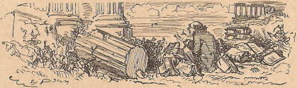 Sed la malamiko, rekonsciinte el sia mirego, estis rekomencinta la sieĝon. Tri aŭ kvar rabistoj estis ŝovintaj la nazon super niaj remparoj, kaj vidintaj la buĉadon. Koltzida ne sciis, kion pensi pri tiuj tri skurĝoj, kiujn li estis vidinta frapantajn blinde sur liajn amikojn kaj malamikojn; sed li konjektis, ke la fero aŭ la veneno liberigis lin de la Reĝo de l’ montoj. Li ordonis, ke oni disĵetu singarde niajn defendajn konstruaĵojn. Ni estis ekster lia vido, ŝirmite kontraŭ muro, je dek paŝoj de la ŝtuparo. La bruo de la falantaj materialoj avertis niajn amikojn, ke ili reŝargu siajn batalilojn. Haĝi-Stavros ne malhelpis ilin. Poste, li diris al John Harris: