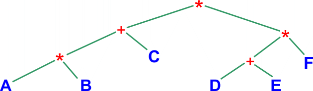 W pewnym drzewie wzorów węzły-liście zawierają litery jako dane i nie posiadają węzłów-dzieci. Węzły wewnętrzne posiadają jako dane "+" lub "*" i mają dwoje dzieci – lewe poddrzewo i prawe poddrzewo. Znak "+" oznacza alternację – można tu wybrać albo znaki z lewego poddrzewa, albo znaki z prawego poddrzewa. Znak "*" oznacza konkatencję – łańcuch z lewego poddrzewa musi być łączony z łańcuchem drzewa prawego. Na przykład: