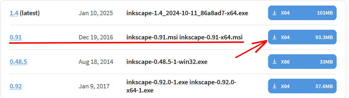 Pobierz wskazany instalator. Możesz wybrać inny, lecz tutaj został opisany Inkscape w wersji 0.91. Inna wersja może różnić się niektórymi opcjami oraz wyglądem. Jak już opanujesz wersję 0.91, możesz wybrać inną, która ci najlepiej odpowiada. Obecnie (2025) najnowsza wersja to Inkscape 1.4.
