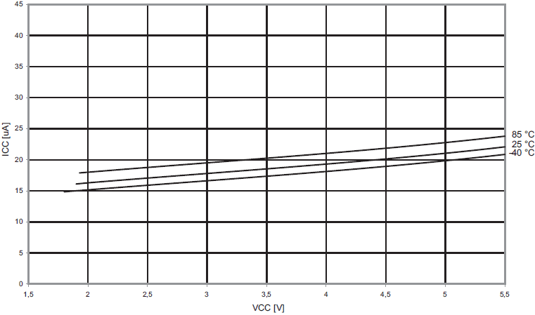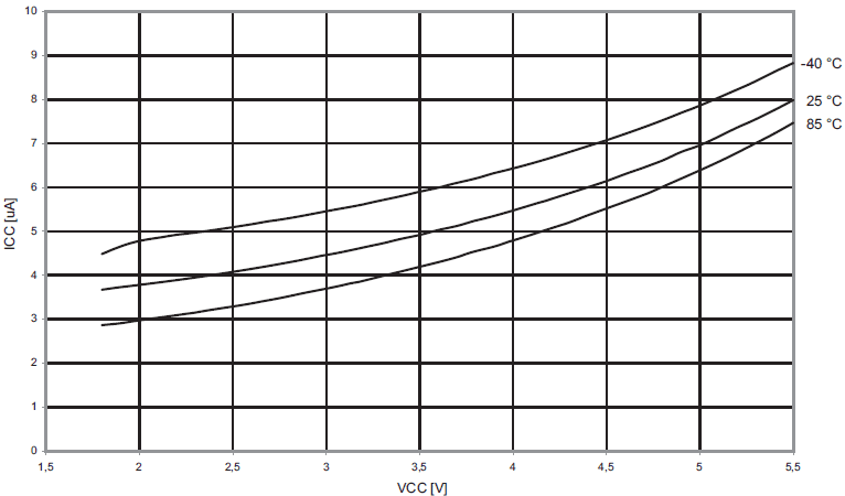 funkcji napięcia wejściowego (VCC = 1,8V)
