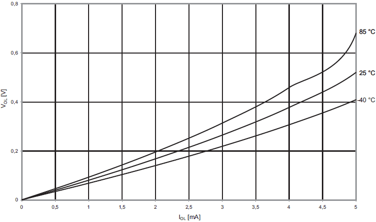 VOL: napięcie wyjściowe w funkcji prądu wpływającego do końcówki
