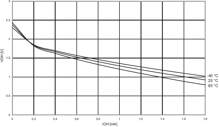 VOH: napięcie wyjściowe w funkcji prądu wypływającego z