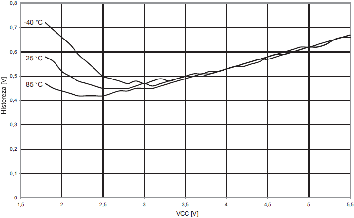 VIH-VIL: Histereza wejściowa w funkcji VCC