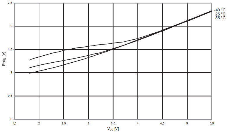 VIL: Próg napięcia wejściowego w funkcji VCC