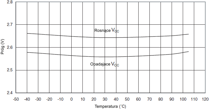 Rys.25 Histereza wejściowa końcówki we/wy w funkcji VCC