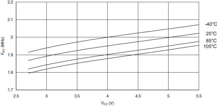 Rys.43 Częstotliwość kalibrowanego oscylatora RC 2MHz w