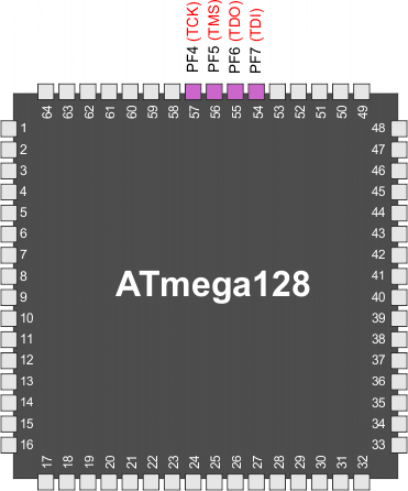 Gdy bit bezpiecznikowy JTAGEN nie jest zaprogramowany, to te cztery końcówki TAP są normalnymi końcówkami portu, a kontroler TAP znajduje się w stanie resetu. Gdy bit ten zostanie zaprogramowany i bit JTD w rejestrze MCUCSR jest wyzerowany, to linie sygnałowe TAP zostają podciągnięte wewnętrznie do stanu wysokiego, a JTAG włącza się do skanowania ścieżki krawędziowej i programowania. W tym przypadku końcówka wyjściowa TAP (TDO) staje się wiszącą bez podłączenia w stanach, w których kontroler TAP nie przesuwa danych i z tego powodu musi być podłączona do opornika podciągającego lub innego urządzenia wyposażonego w oporniki podciągające (na przykład wejścia TDI następnego mikrokontrolera w łańcuchu skanowania). Mikrokontroler sprzedawany jest z zaprogramowanym bitem bezpiecznikowym JTAGEN.
