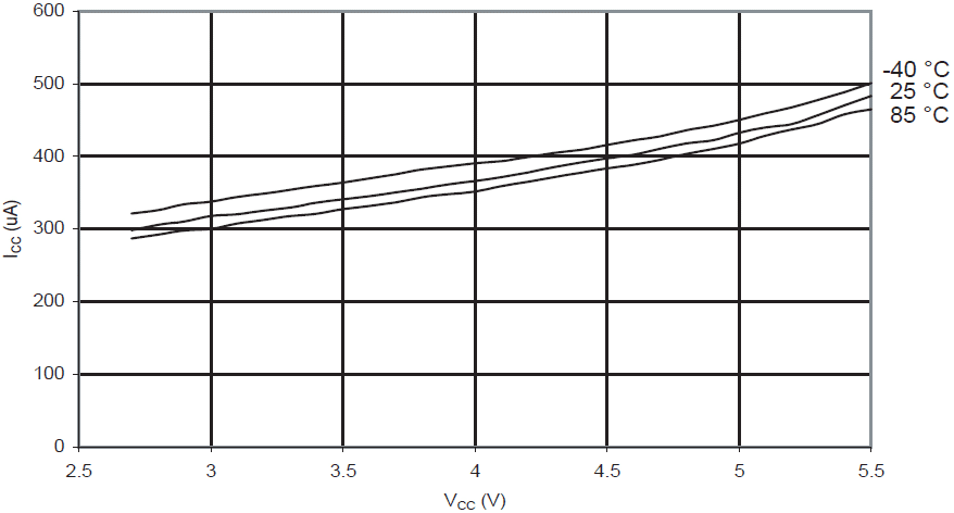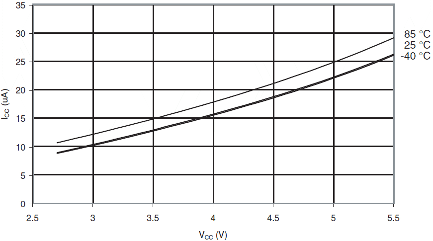 Prąd komparatora analogowego w funkcji VCC