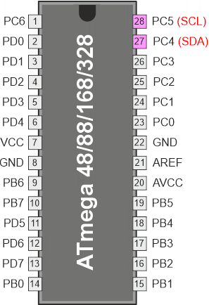 Te końcówki pośredniczą pomiędzy modułem AVR TWI a resztą systemu mikrokontrolerowego. Drajwery wyjściowe zawierają ogranicznik szybkości narastania zbocza sygnału, aby podporządkować się specyfikacji TWI. Stopnie wejściowe zawierają tłumienie impulsów szpilkowych krótszych niż 50 ns. Zwróć uwagę, że wewnętrzne oporniki podciągające można uaktywnić przez ustawienie bitów rejestru PORT odpowiadających końcówkom SCL i SDA, co jest wyjaśnione w rozdziale "Porty we/wy". Wewnętrzne oporniki podciągające mogą w niektórych systemach wyeliminować potrzebę stosowania zewnętrznych.