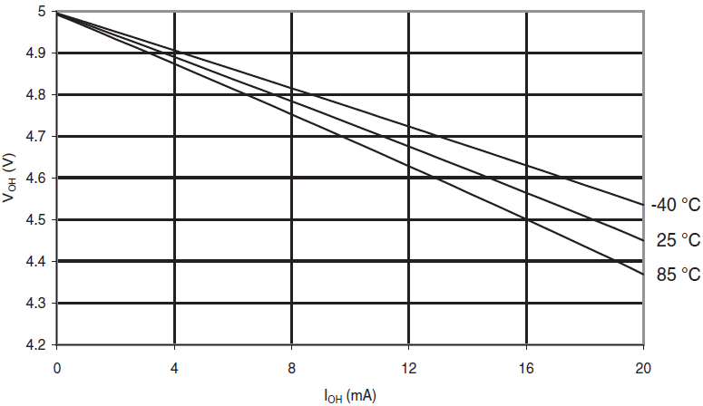 Rys.23 ATmega48A: Napięcie wyjściowe końcówki we/wy w funkcji