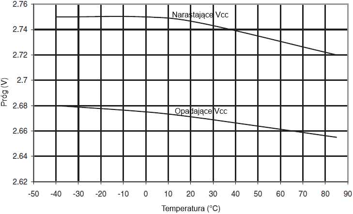Progi BOD w funkcji temperatury (BODLEVEL wynosi 2,7V)