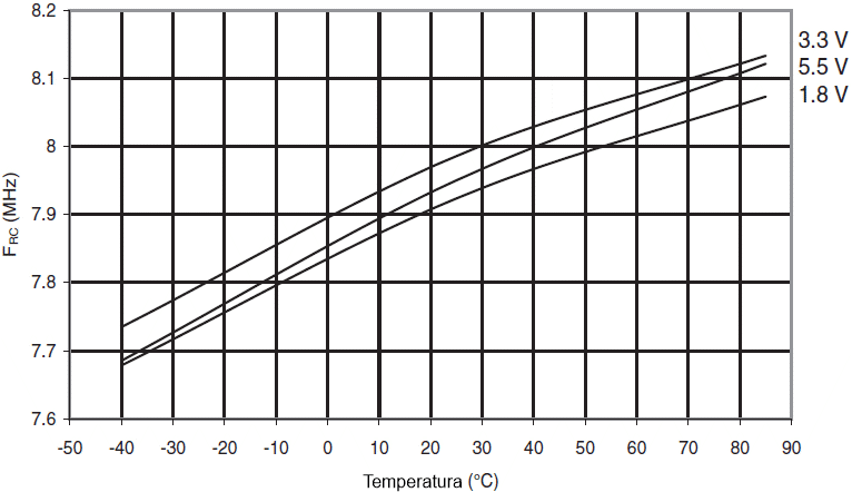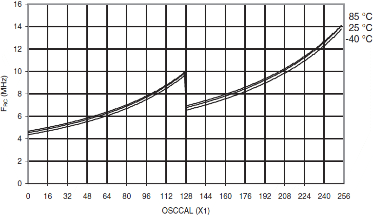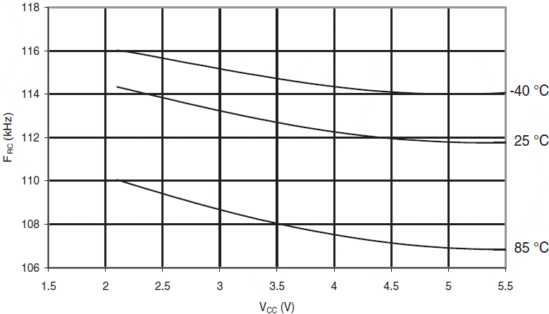 Rys.39 ATmega48A: Częstotliwość kalibrowanego oscylatora RC