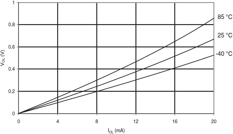 Rys.117 ATmega88A: Napięcie wyjściowe końcówki we/wy w funkcji