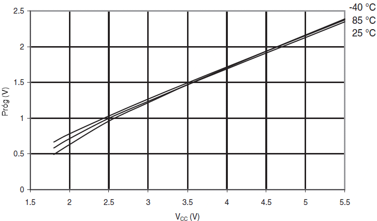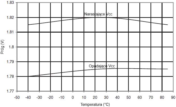 Progi BOD w funkcji temperatury (BODLEVEL wynosi 1,8V)