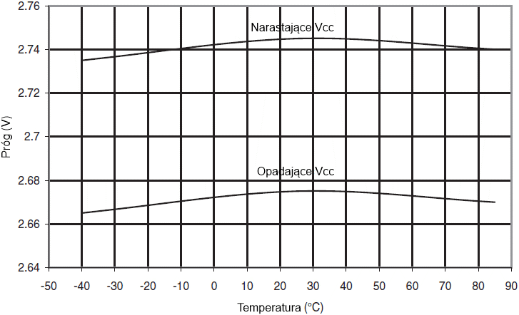 Progi BOD w funkcji temperatury (BODLEVEL wynosi 2,7V)