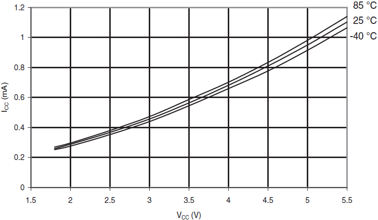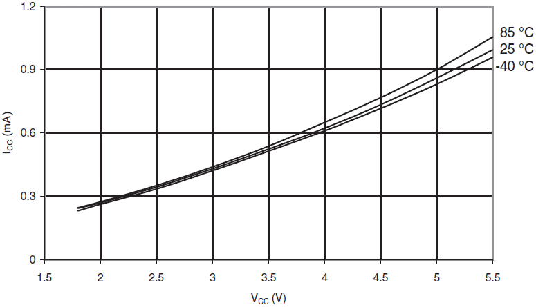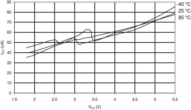 Rys.135 ATmega88A: Prąd komparatora analogowego w funkcji VCC