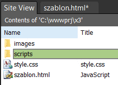 Kliknij lewym przyciskiem myszki w plik szablon.html, aby został zaznaczony: