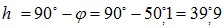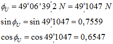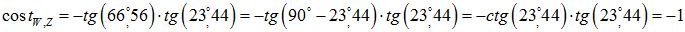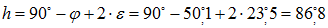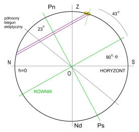Wysokość dołowania północnego (tj. na północ od zenitu):