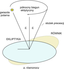 We wspomnianej pracy poznaliśmy też geometrię sfery niebieskiej, stosowane układy współrzędnych i wzory trygonometrii sferycznej. Dla początkującego astronoma wystarczy przeświadczenie, że w układzie horyzontalnym i godzinnym współrzędne rozpatrywanych obiektów na ogół zmieniają się (są związanie z obserwatorem). Tylko w układzie współrzędnych równikowych równonocnych mamy do czynienia z subtelnymi zjawiskami, powodującymi powolne zmiany (roczne i wiekowe) rektascensji i deklinacji.