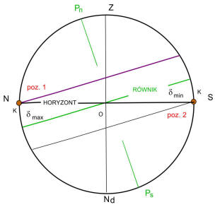 ma maksymalną deklinację. Na tych szerokościach panuje wtedy noc polarna