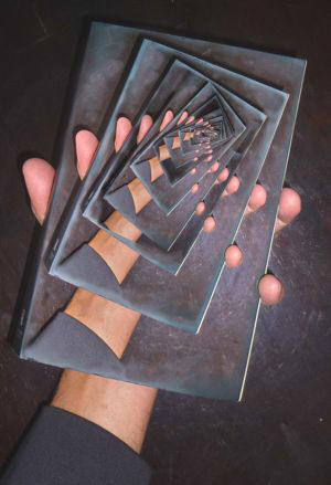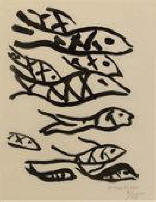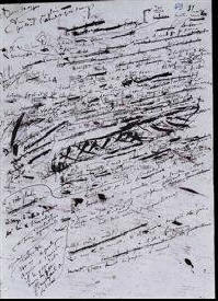El la fundo de la noktotabla tirkesto, sub braceletoj kaj belŝmiraĵoj, ŝi deprenis feltizitan poŝeton. Rite ŝi promenigis siajn fingrojn laŭlonge de la tri kunkudritaj randoj ; tiam ŝi malnodis laĉon ĉe la kvara flanko kaj eltiris poŝtukon. Sub la fostoponto daŭre ruliĝis kaj lirlis la kristala rojo ; en la ĉielo senŝanĝe sterniĝis stratuso, kiu kaŝis la timigan senlimon ; sur la ŝtonparapeto, radiante de luma emocio, apogiĝis ŝultr-ĉe-ŝultre juna paro. La nigrinka desegnaĵo ĉarmis pro sia leĝereco kaj pimpeco, pro la interna pulsado tre persona. La batisto-tuko konserviĝis tiom blanka kiom en la tago, kiam ŝi ĝin ricevis, antaŭ ekzakte ok jaroj. Kaj tie, en la malsupra dekstra angulo, sub la dato — “80” —, staris la signaturo, la rokfirma litero, kiu fandigis ŝian animon, kiu perdigis al ŝi la dormemon, kiu provokis en ŝi dum tiu tuta tempo, spite ĉiujn okazaĵojn de ŝia vivo, blindiĝon, senrealeciĝon, febr-tremojn, takikardion, kaj nun ankaŭ koleron, furiozon, rankoron, mi-ze-ron... Ŝi longe kontempladis ĝin: “G.”...