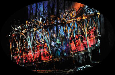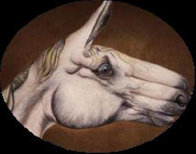 Alterne kun ili rulis laŭtakte feaj fantastaj kaleŝoj, tiom luksaj kaj mirindaj, en siaj okraj kaj purpuraj tonoj, ke la deliron de la festo ŝajne kreis ĥimero, mirakla fatamorgano. La muziko eĥiĝis kiel plua miraĝo, ĉi-foje por la oreloj, kristalpura, sorĉa, kun sonoj el mezepokaj instrumentoj. La kaleŝoj kaj ĉevalparoj milimetre respektis la distancon inter si, kiel se ne ili moviĝus, sed magia tapiŝo al kiu ili estus algluitaj por plurfoja rondirado kaj kiu nun malrapidigis ilian ŝajnmarŝon, harmonie kun la malhastanta muziko. La infanoj en la veturiloj kaj sur la bestodorsoj komencis marionetan imitadon de siaj aplaŭdoj kaj gajaj gestoj laŭ pli kaj pli lanta kadenco. La karuselo definitive haltis.
