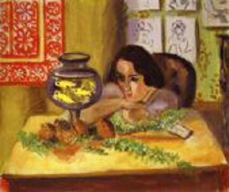 Kun la okuloj larme malsekataj ŝi aliris al la pordo kaj tuj amuziĝis antaŭ liaj gestoj ŝajnigantaj plej enuan atendegon, des pli ĝenan pro la tikladoj de la feliĉaj gekonuroj, kiuj flugetis kaj interbatalis ĉirkaŭ lia kapo kaj sur liaj ŝultroj.