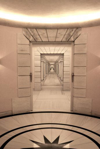 Sed ŝi estis abrupte antaŭenpelata dum raŭka voĉo elnerviĝis: “Okazis ia eraro: sur la listo la nomo estas Natalia Kastelo. La venonta prezentiĝu!” Amaso da senesperiĝmienaj uloj ĉiel ŝarĝitajj per pakaĵoj interpuŝiĝis laŭ mizeraj, malpuraj, stinkantaj galerioj, kie centoj kaj centoj da karceroj liniiĝis. La premo kreskis, Natalia konsternita kaj angora ŝanceliĝis sub la skuadoj kaj eksufokiĝis, sensukcese provante reveni al la enirejo. Ŝi stumblis, falis, ruliĝis sub piedbatoj en unu el la klozetŝajnaj ĉeloj. Tie kaŭris magra kaj olda viro, kun drapiro ĉirkaŭ la talio kaj nuda brusto. Kiam li ekparolis ŝi jam estis komplete hipnotita. “Fraŭlino Natalia Kastelo, sep kaj sep en via nomo. Sep kaj sep ankaŭ en la jaroj. Vi ne scias suferon. Lernu paciencon, lernu suferon, nur tiam por vi li ekzistos. Ne nun, ne, ne nun...”