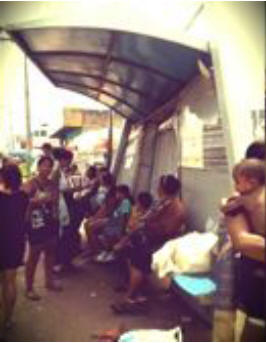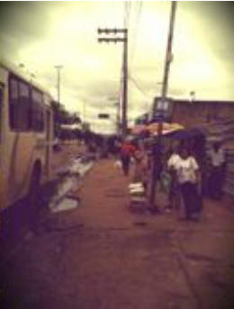 De la finlinia bushaltejo elfluis sendistinge amasoj da ŝvitaj homoj, ĉiuaĝaj, sed ĉiuj palaj, spite la diversgrade tankolorajn haŭtojn, kun siaj eluzitaj plastaj sakoj el Domoj Pernambukanaj aŭ aliaj grandmagazenoj, kiuj aspektis tiom pezaj — ĉu pro la enorma malpleneco de la ladaj skatoloj, kie matene ili estis kunportintaj la tagmezan manĝaĵon? Knabinoj nudpiedaj — longaj malgrasaj gamboj, kurtaj senkolorigitaj jupoj, ĉemizetoj tie kaj jene ettruitaj — saltis en sia paradizludo. Gestoj, ridoj, aplaŭdoj. Virino eliris el la flankkoridora kuirejpordo, flugis ĝis la strato, kaptis tri-jaran rondvizaĝan negridon je la mano, kies dikfingron li estis kviete suĉanta en kontemplado de la rulantaj globetoj ĉe la mezo de la sableca vojo, kaj, jen, ŝi lin ekskuegis, ŝiaj voĉkordoj ŝveliĝis sur ŝia kolo pro supermezura irito rilata al io, kion ŝi estis dirinta dekojn da fojoj al li, ĉu li ne komprenas, ĉu li estas surda, ĉu ŝi denove tanu al li la haŭton...