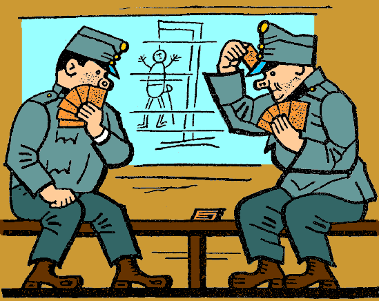 ”Ili ricevis,sinjoroj oficiroj,” li diris melankolie, ”hepatkonservaĵojn kaj hungaran salamon. Havi almenaŭ peceton.”