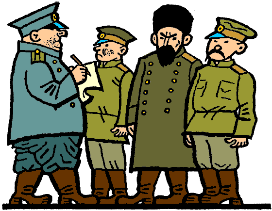 Tiu ĉi generalo diradis, ke li bezonas neniujn enketajn juĝistojn, ke li tion kunirigos kaj post tri horoj ĉiu ulo devas pendi. Dum li estis en la fronto, oni neniam sentis ĉe li mankon de senprokrastaj juĝprocesoj.