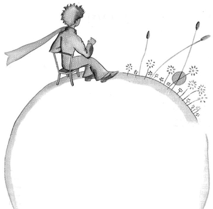 ”Mi ĉiam pensas kvazaŭ mi estus hejme!” Efektive. Kiam tagmezas en Usono, la suno — ĉiuj scias tion — subiras super Francio. Por ĉeesti la sunsubiron sufiĉus, ke oni povu en unu minuto atingi Francion. Bedaŭrinde, Francio estas multe tro malproksima. Sed sur via tiel eta planedo sufiĉis, ke vi tiru vian seĝon je kelkaj paŝoj. Kaj vi rigardis krepuskon tiel ofte kiel vi deziris…