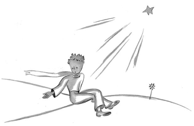 ”Nokte vi rigardos stelojn. La mia estas tro eta, por ke mi povu montri ĝin al vi. Estas pli bone tiel. Mia stelo estos por vi unu el la steloj. Tial vi ŝatos rigardi ĉiujn stelojn… Ili ĉiuj estos viaj amikoj. Kaj krome mi donos al vi donacon…”