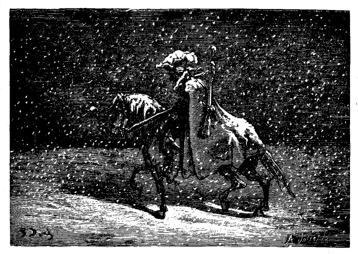 Mi ekvojiris el Romo, por vojaĝi al Ruslando meze de vintro, ĝuste pensante, ke frosto kaj neĝo nature plibonigos la vojojn, kiuj, laŭ la diro de ĉiu vojaĝanto, estas eksterordinare malbonaj en la nordaj partoj de Germanujo, Polujo, Kurlando kaj Litovujo. Mi iris surĉevale, ĉar tio estas la plej oportuna maniero vojaĝi; mi estis malpeze vestita, kaj pro tio mi des pli sentis la maloportunecon, ju pli nordorienten mi antaŭenvenis. Kiom devis suferi en tiuj severaj vetero kaj klimato tiu kompatinda maljunulo, kiun mi trovis sur senŝirma kampo en Polujo! Li kuŝis sur la vojo, senhelpa, tremanta kaj havanta preskaŭ neniun kovraĵon por sia nudeco. Mi kompatis la malfeliĉan homon; kvankam mi mem sentis la akrecon de la aero, mi tamen ĵetis sur lin mian mantelon, kaj tuj mi aŭdis voĉon el la ĉielo, benanta min pro tiu bonfara ago, kaj diranta: ”Mia filo, por ĉi tio vi iam ricevos rekompencon.” Mi iris antaŭen; nokto kaj mallumo ĉirkaŭis min. Neniu vilaĝo estis videbla. La tuta kamparo estis kovrita de neĝo, kaj mi ne konis la vojon.