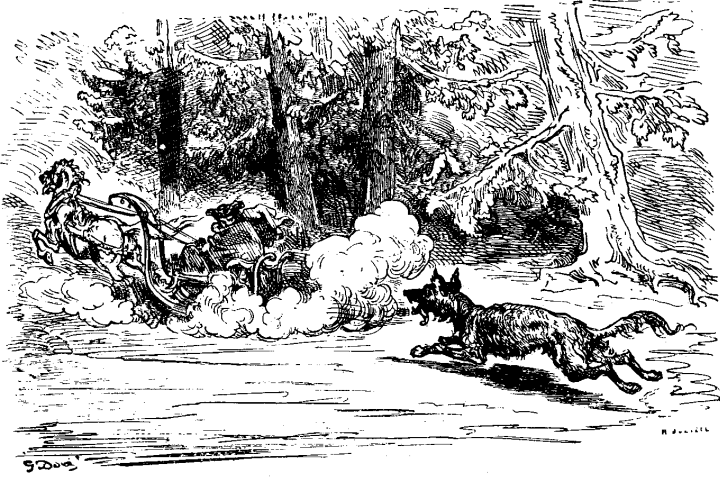 Mi ne ĝuste memoras, ĉu estis en Estlando aŭ en Ingermanlando, sed mi memoras, ke meze de sovaĝa arbaro mi ekvidis teruran lupon kuranta post mi kun la tuta rapideco de avida vintra malsatego. Ĝi baldaŭ atingis min. Estis neniu ebleco de saviĝo.