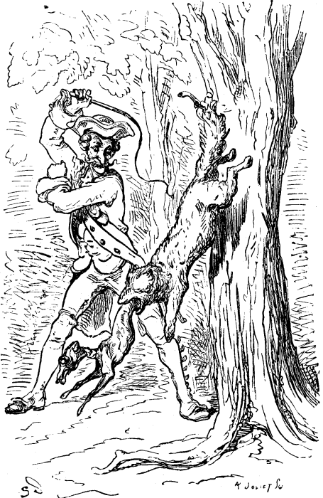 En iu nobela arbaro en Rusujo mi renkontis belan nigran vulpon; estus domaĝe ties multvaloran felon difekti per kuglo aŭ pafaĵo. La vulpo staris proksime de arbo. Rapide mi elprenis la kuglon kaj metis bonan najlon en ĝian lokon, pafis kaj trafis tiel bone, ke mi alnajlis ĝian voston al la arbo. Mi tuj aliris, eltiris mian tranĉilon, faris kruc-tranĉon trans ĝian vizaĝon, ekprenis mian vipon kaj elvipis la vulpon el ĝia bela felo.