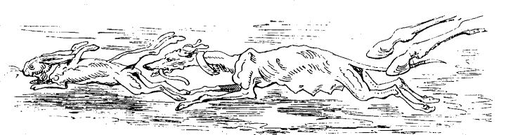 Instinkte la unuaj kuris, kaj la lastaj ĉasis; kaj mi trovis min posedanto de ses leporoj kaj de sama nombro da hundoj ĉe la fino de ĉaso, kiu komenciĝis nur per unu.