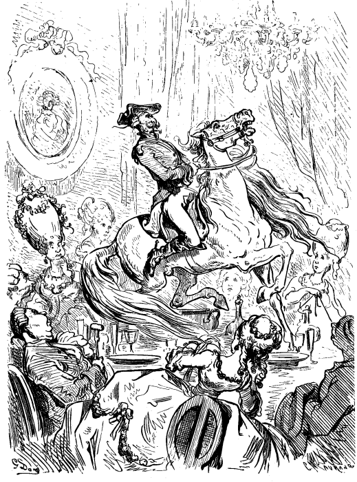Mi memoras ĉi tiun mian mirindan hundinon kun la samaj plezuro kaj amo kiel belegan litovan ĉevalon, kiun mono ne povus aĉeti. Ĝi, fariĝis mia tute hazarde, kaj tio donis al mi okazon montri mian lertecon en ĉevalrajdado en plej bonaj cirkonstancoj. Mi estis gasto, en la belega kampodomo de grafo Przoboski en Litovujo, kaj restis por tetrinko kun la sinjorinoj en la salono, dum la sinjoroj estis ekstere sur la korto por rigardi junan altspiritan ĉevalon, kiu ĵus alvenis el la ĉevalbredejo. Ni subite ekaŭdis alarman bruon; mi rapidis malsupren kaj trovis la ĉevalon tiel neregebla, ke neniu kuraĝis alproksimiĝi al ĝi aŭ surseliĝi. La plej kuraĝaj ĉevalrajdistoj staris konsternitaj kaj en teruro; malespero esprimiĝis sur ĉies vizaĝo, kiam, per unu salto, mi estis sur ĝia dorso. Per tio mi surprizis ĝin kaj poste faris ĝin ĝentila kaj obeema per la plej bona montro de rajdarto, kiun mi posedis. Por montri tion perfekte al la sinjorinoj kaj por ŝpari al ili la neceson eliri eksteren, mi devigis la ĉevalon, salti tra la fenestro en la salonon, ĉirkaŭmarŝis kelkajn fojojn, pasis, trotis kaj galopis, kaj fine igis la ĉevalon surtabliĝi, por ripeti la manovrojn sur la tablo en bela stilo de miniaturo, kio tre plaĉis al la sinjorinoj; ĉar la ĉevaleto faris ĉion mirinde bone kaj rompis nek tason nek teleron. Tio metis min tiel alten en ilia opinio kaj tiel bone en la opinio de la grafo, ke kun sia kutima ĝentileco li petis, ke mi akceptu tiun junan ĉevalon por rajdi ĝin plengalope al venko kaj honoro en la milito kontraŭ la turkoj, kiu baldaŭ devis komenciĝi sub la komando de grafo Münnich.