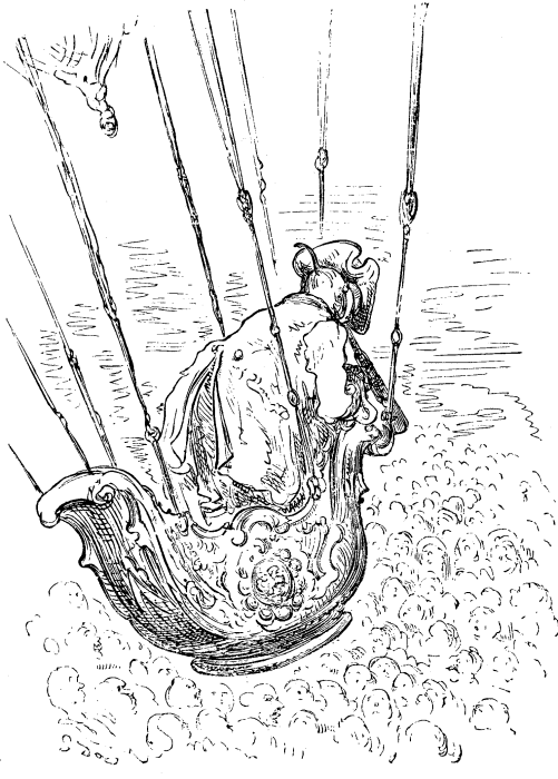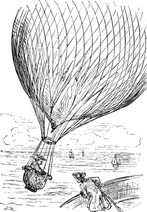 ”La kaŭzo” – li aldonis – ”de mia longa flugado estis malfunkciigo de ŝnureto, kiu estis fiksita al valvo en la baliono kaj celis la ellason de la bruliĝema gaso; kaj se la balono ne estus alpafita kaj la ŝnureto disŝirita en la antaŭdirita maniero, eble mi, kiel Mahometo, estus pendanta inter la ĉielo kaj la tero ĝis la tago de la lasta juĝado.”