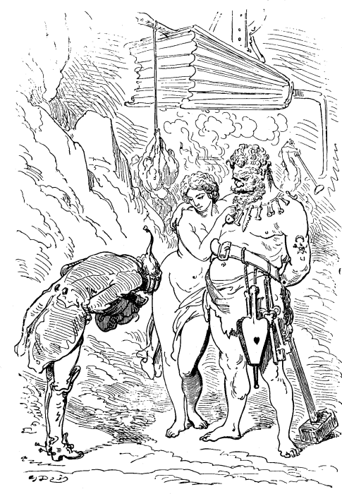 Post la fino de tiu manĝo, Vulkano ordonis al Venuso, ke ŝi montru al mi ĉiun favoron, kiun mia situacio postulis. Priskribi la ĉambron kaj la kuŝejon, sur kiu mi ripozis, estas tulte ne eble, tial mi ne provos ĝin; sufiĉu diri, ke fari al tia priskribo justecon aŭ paroli pri tiu korafabla diino en iu maniero konforma al ŝia merito, estas ekster la kapablo de vortoj.