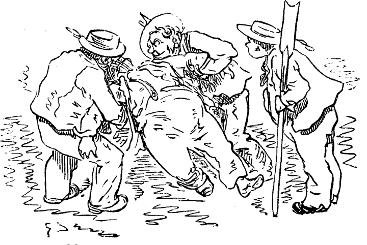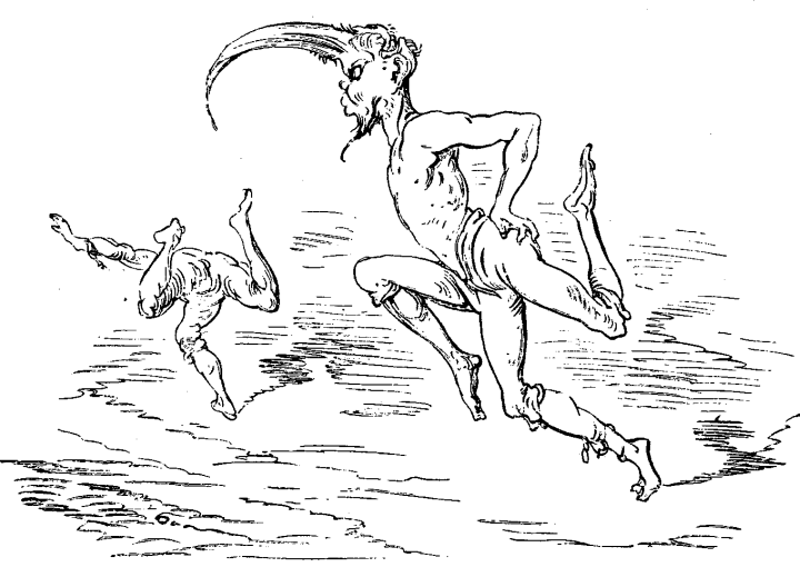 Ĉi tie estis sufiĉe da vinberarboj kun grandaj vinberoj, kiuj, post premado, donis nenion krom lakto. Ni vidis la loĝantojn kurantaj vetkonkursojn sur la supraĵo de la lakto: ili estis rektaj, elegantaj figuroj, nur futojn altaj, havis tri krurojn, sed nur unu brakon. Iliaj formoj estis entute graciaj, kaj dum kverelo ili uzas kun granda lerteco rektan kornon, kiu kreskas ĉe plenaĝuloj sur la centro de ilia frunto. Ili tute ne surfundiĝis, sed kuris kaj marŝis sur la supraĵo de la lakto, kiel ni kuras kaj marŝas sur herbejo.