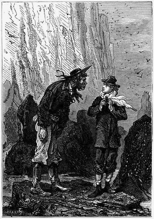 – Mi serĉos kavernon en la rokoj – respondis Harbert – kaj mi kredeble trovos groton, kie ni ĉiuj trovos lokon.