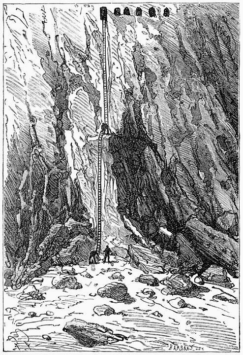 Ĝis nun Cyrus Smith kaj liaj kunuloj havis nur unu aliron al la kaverno: tra la antaŭa deflukanalo. Krom la konsiderinda peno, irado laŭ ĝi ankaŭ implicis grandan perdon de tempo. Cyrus Smith do decidis tuj komenci la konstruadon de forta ŝnurŝtupetaro, post forigo de kiu la Granita Palaco iĝus absolute neatingebla.