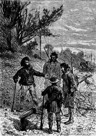 Cyrus, Gideon, Harbert kaj Pencroff iris rekte al la gregejo. Ĉiu el ili portis ĉaspafilon sur sia ŝultro, pretan por pafi, kaj Top kuris antaŭ ili, serĉante tra la arbaro; sed sen bojado aŭ montrado de ia zorgo. Irante laŭ la vojo, la setlantoj samtempe kontrolis la telegraflinion ligantan la gregejon kun la Granita Palaco. Je la longo de preskaŭ du mejloj ĉio estis tute bona. La fostoj estis en bona stato, la izoliloj estis sendifektaj; sed plue la inĝeniero rimarkis, ke la drato ne plu estis tiel bone streĉita, kaj kiam ili atingis la foston 74, Harbert, antaŭiranta la ceterajn, haltis kriante: