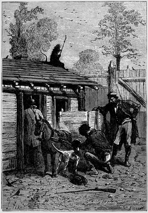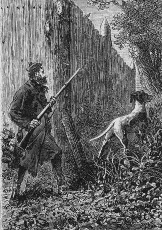 Unu aŭ du foje la raportisto kuraĝis iri ekster la farmpordegon kaj ĉirkaŭiri la palisaĵon. Top estis kun li, kaj li mem estis singarda kun sia pafilo malsekurita. Li neniam havis malagrablajn renkontojn, kaj li ne rimarkis suspektindajn spurojn ĉirkaŭ la gregejo. Cetere, la hundo kondutis trankvile, kio signifis, ke la piratoj malproksimiĝis.