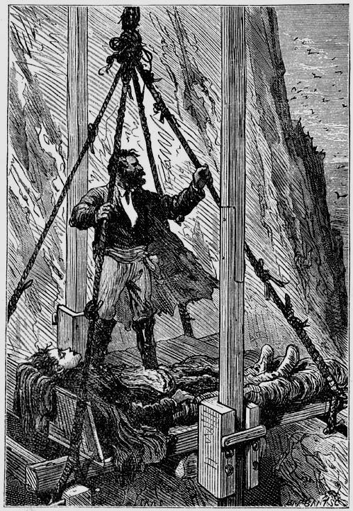 Ĉirkaŭ la tria matene, Harbert ekkriegis. Oni povis konstati, ke li tordiĝis en siaj lastaj konvulsioj. Nab, kiu estis apud li, kun esprimo de ekstrema timo, kuris en la apudan ĉambron, kie la ceteraj kunuloj gardostaris. En ĉi tiu momento Top ekbojis strange.